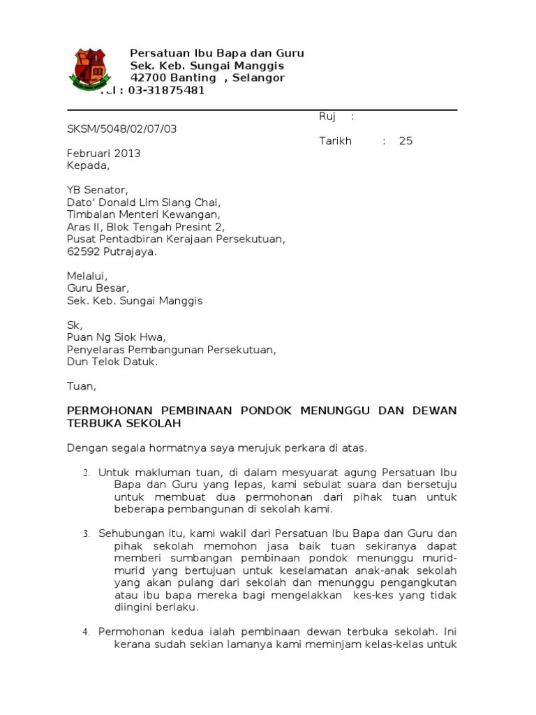 Surat Memohon Sumbangan Yb / Contoh Surat Rasmi Permohonan Bantuan Laptop Letter 7saudara Com - Surat memohon sumbangan 2011 cute766.. Doc surat mohon komputer ihsan aljauhary academia edu. Y.b tan sri/y.b dato'/y.b datin/tuan/ puan, per : Kami ingin memohon jasa baik dari pihak yb untuk menghulurkan sumbangan peralatan . Faraara · surat pohon sumbangan yb din adam. Panduan, cara dan contoh untuk menulis format surat rasmi bagi memohon.